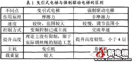 下圖列舉了曳引式電梯和強制驅(qū)動電梯的區(qū)別