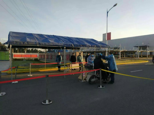 ▲ 廠區(qū)門口測量體溫