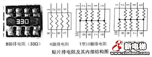 排電阻器是一種把按一定規(guī)律排列的分立電阻器集成在一起的組合型電阻器,也稱為集成型電阻器。它是一種電阻網(wǎng)絡(luò)、具有體積小、規(guī)整化、精密度高等特點、適用于電子儀器設(shè)備及計算機電路,一般用“RN”表示。主板中的排電阻主要有8腳和10腳兩種,其中8腳的用的較多。在主板中,一般使用標(biāo)注“472”、“330”、“220”等的排電阻,其中“330”表示阻值為33歐。