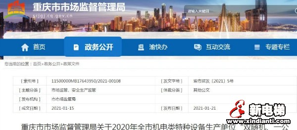 重慶市市場(chǎng)監(jiān)督管理局關(guān)于2020年全市機(jī)電類特種設(shè)備生產(chǎn)單位“雙隨機(jī)、一公開”監(jiān)督抽查情況通報(bào)。經(jīng)查,12家單位維保電梯隱患整改情況,對(duì)未實(shí)施整改的單位予以行政處罰。2家單位依法注銷行政許可資質(zhì)。
