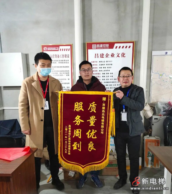 近日,西繼迅達(dá)收到了一面來自昌建·金佰匯商場(chǎng)改造項(xiàng)目部的錦旗,相關(guān)領(lǐng)導(dǎo)表達(dá)了對(duì)西繼迅達(dá)工作人員的肯定和感謝,并希望在今后的合作中,進(jìn)一步加強(qiáng)和鞏固雙方之間的合作關(guān)系,達(dá)成合作共贏。
