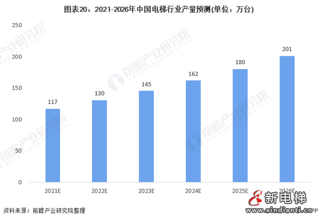 隨著我國(guó)經(jīng)濟(jì)持續(xù)快速增長(zhǎng)、城市化快速推進(jìn)、人民生活水平提高、人口老齡化等因素的推動(dòng),我國(guó)電梯行業(yè)也呈快速發(fā)展態(tài)勢(shì)。2010-2020年,我國(guó)電梯產(chǎn)量的復(fù)合增長(zhǎng)率約為11.4%,前瞻預(yù)計(jì),未來(lái)我國(guó)電梯產(chǎn)量將繼續(xù)保持高速增長(zhǎng),到2026年,我國(guó)電梯新增量將超過(guò)201萬(wàn)臺(tái)。