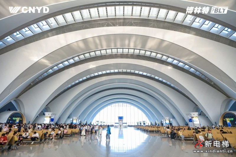 2023年初,博林特電梯中標(biāo)南昌東站項(xiàng)目時(shí),距離車站計(jì)劃開通僅余10個(gè)月。工期緊、交叉施工頻繁、各單位接口協(xié)調(diào)復(fù)雜等難題接踵而至。“當(dāng)時(shí)站房還在主體施工,我們的技術(shù)團(tuán)隊(duì)就得戴著安全帽鉆進(jìn)工地,在粉塵與噪音中勘測井道尺寸。”針對車站不同區(qū)域的功能需求,博林特提供了種類齊全的電梯產(chǎn)品,從承擔(dān)大客流運(yùn)輸?shù)墓步煌ㄐ头鎏?,到滿足旅客行李搬運(yùn)需求的重載型直梯,全方位覆蓋站房、站臺(tái)、換乘通道等不同場景,精準(zhǔn)滿足項(xiàng)目的多樣化需求。