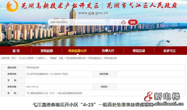 安徽省蕪湖市弋江澛港春暖花開小區(qū)“4.23”一般高處墜落事故是一起發(fā)生在2024年4月23日的安全生產(chǎn)事故,調(diào)查報告由弋江區(qū)市場監(jiān)督管理局發(fā)布于2025年9月16日。‌